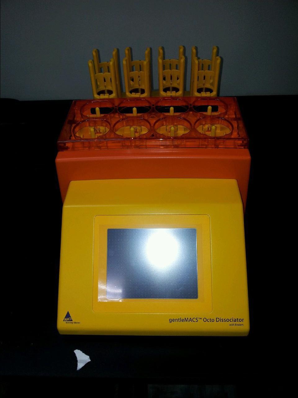 - 본 장비는 다양한 동물의 조직으로부터 기계적인 방법과 효소처리 방법을 동시에 수행하여 Single Cell suspension으로 Dissociation 해주는 장비로서, 조직으로부터 세포를 분리하여 여러 용도의 실험을 하기 위한 샘플 준비 과정에서 사용.