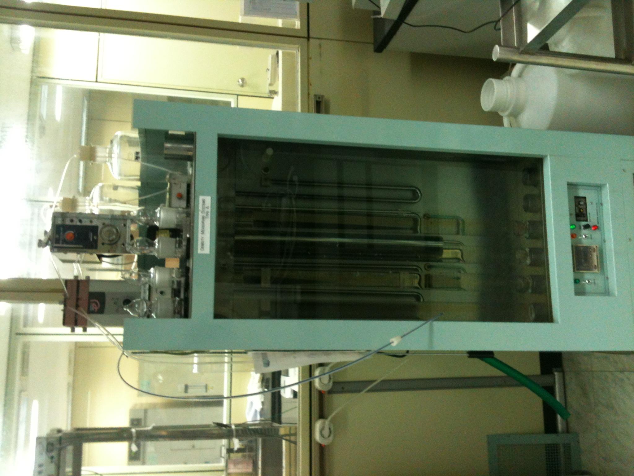 - 밀도구배관은 고분자 물질의 밀도를 가장 정확하고 쉽게 측정할 수 있는 방법임. - 이 시험법의 심장이라고 할 수 있는 표준구는 시바야마 과학에서 30년의 경험을 바탕으로 제작하고 있음. - 사용되는 표준구는 ±0.0002g/cc의 고도의 정확성을 갖고있음. - 다양한 형태의 (필름 플레이트 펠렛 등) 고체물질인 경우 어떤 것이라도 밀도 측정이 가능함. ㆍ밀도구배액 제조에 대하여 - 밀도구배액은 각각의 다른 밀도를 갖는 연속적인 수 천개의 층으로 구성된다. 낮은 밀도 액은 밀도구배관에서 윗층에 자리잡게 되며 무거운 밀도액은 바닥에 가라 안는다. 밀도구배액은 한 층의 밀도 구성은 높고 낮은 밀도액이 쌓여 연속된 것이다 - 밀도구배관의 설치와 사용 : 밀도액으로 채워있는 밀도구배관은 장기간 지속적으로 밀도액의 변동없이 사용하기 위하여 항온조에 설치한다. 밀도구배관 내에 밀도가 다른 표준구를 띄워 밀도 측정이 가능하게 한다. 측정 sample의 밀도는 밀도구배관 안에 넣어 가장 가까운 표준구와의 거리와 비교하여 sample의 위치를 읽어 JIS K 7112-1980에 의거 하여 측정한다. - 밀도구배액 준비 : 밀도구배액은 경액과 중액을 혼합하여 만들어진다. 중액은 밀도구배관의 바닥에 위치하며 점점 낮은 밀도를 갖는 혼합액으로 층을 만들어 밀도구배액을 만든다. ㆍ표준구는 무엇인가? - 표준구는 5㎜의 직경을 갖으며 ±0.0002 g/cc까지 측정이 가능하다. 밀도구배관의 실린더 내에 표준구를 띄워 실린더의 눈금으로 표준구의 위치를 파악하여 smaple의 밀도를 계산한다. - 각각의 표준구는 JIS K 0061-1992의 화학제품의 밀도와 상대밀도법에 만족하는 것임. ㆍ측정방법 - 밀도구배관에 위치한 표준구의 간격을 체크한다. → 밀도구배관 내의 Sample 위치를 측정한다. → 엑셀로 만들어진 프로그램에 측정값을 입력하여 수학적으로 계산한다. |