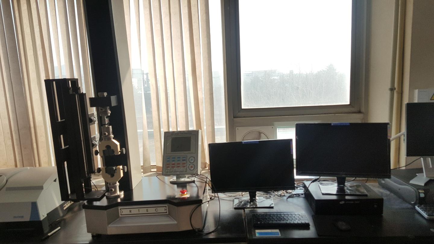 | 장비설명 | 시료의 잡아당기는 힘을 견디는 힘을 측정하는 것으로 시료가 절단될 때 하중을 측정하며 상부 클램프가 시료를 일정한 속도로 신장시켜 절단 시점 하중을 측정하게 되는 원리임. 필름, 종이, 섬유 사 등의 소재의 인장시험을 할 수 있음. | ||