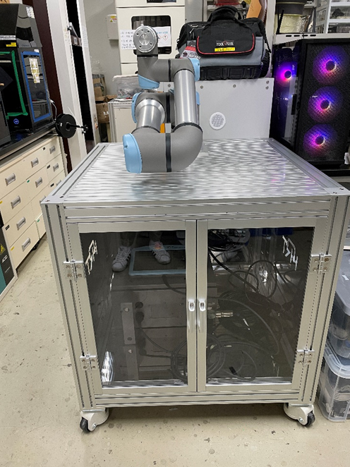 - 로봇은 6자유도를 가지는 로봇 팔로써, 미리 설정된 프로그램 또는 새롭게 코딩된 프로그램을 통하여 원하는 위치와 방향으로 움직임을 만들 수 있는 로봇임. ♦ ROS Package [ROS(Robot operating system) : 로봇운영체제로 인터넷에서 무료 제공 되며 이 오픈소스의 지원(호환)이 가능함] - 원하는 제어 알고리즘을 바로 적용하여 개발한 생체 모방 로봇 부품들을 테스트할 수 있도록 ROS Package가 지원(호환) 가능함. ♦ Teach Pendant - 매니퓰레이터의 시작 및 추가 설정 없이 바로 제어할 수 있는 프로그램이 탑재된 GUI 기반 티칭 펜던트임 |